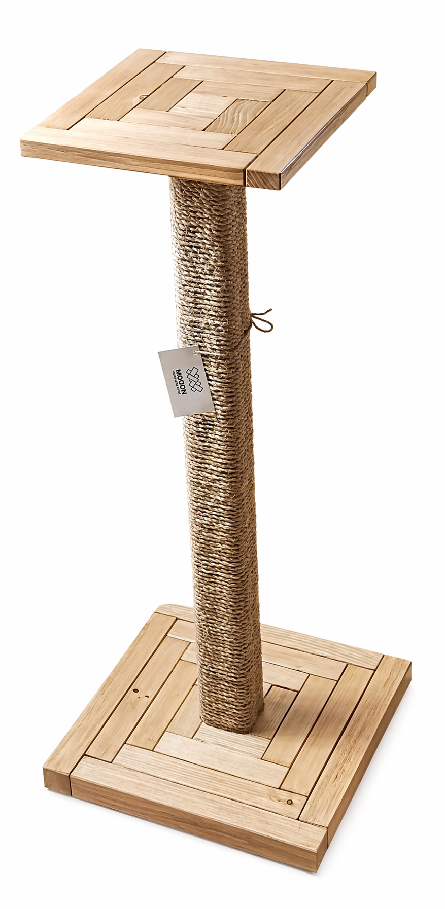 Przedstawiamy duży drewniany drapak dla kota o wysokości 100 cm, stworzony z myślą o komforcie i potrzebach Twojego pupila. Wykonany przez krakowską pracownię Wooden Manufacture, łączy w sobie trwałość, funkcjonalność i estetykę, stanowiąc nie tylko miejsce do zabawy i odpoczynku dla kota, ale także elegancki element dekoracyjny w Twoim domu.