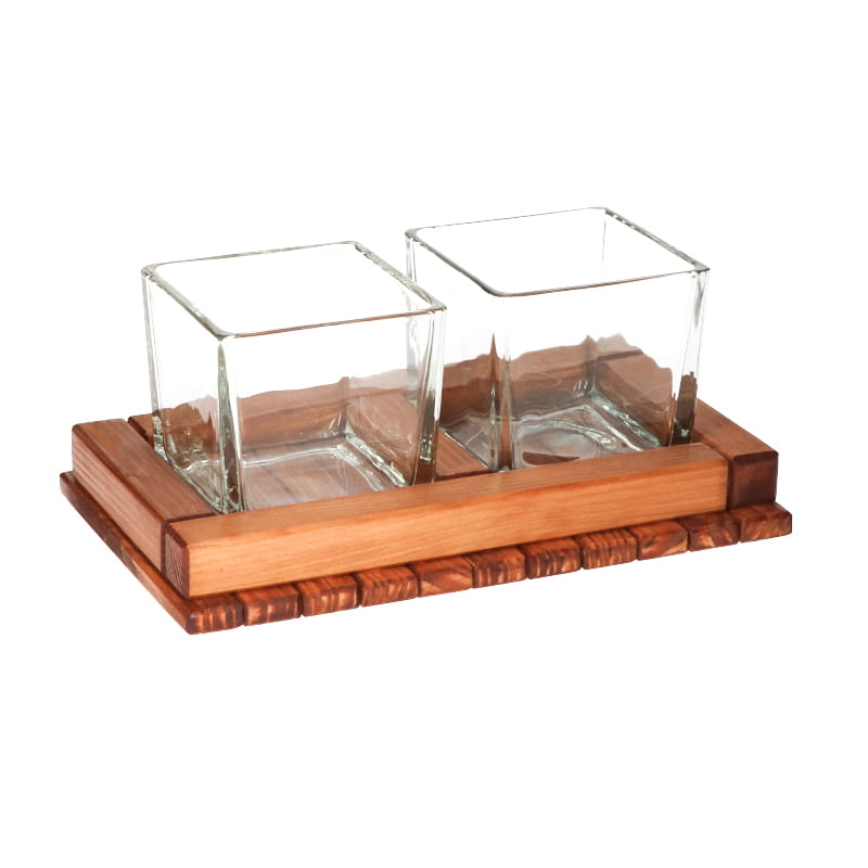 Pojemnik kuchenny drewniano-szklany dwudzielny.